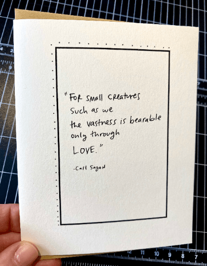 What’s Our Mission? Glad you asked. We want to scatter more joy in the universe, one handmade card at a time. We’re looking to brighten days, pass on the light, make someone smile, maybe even laugh.
